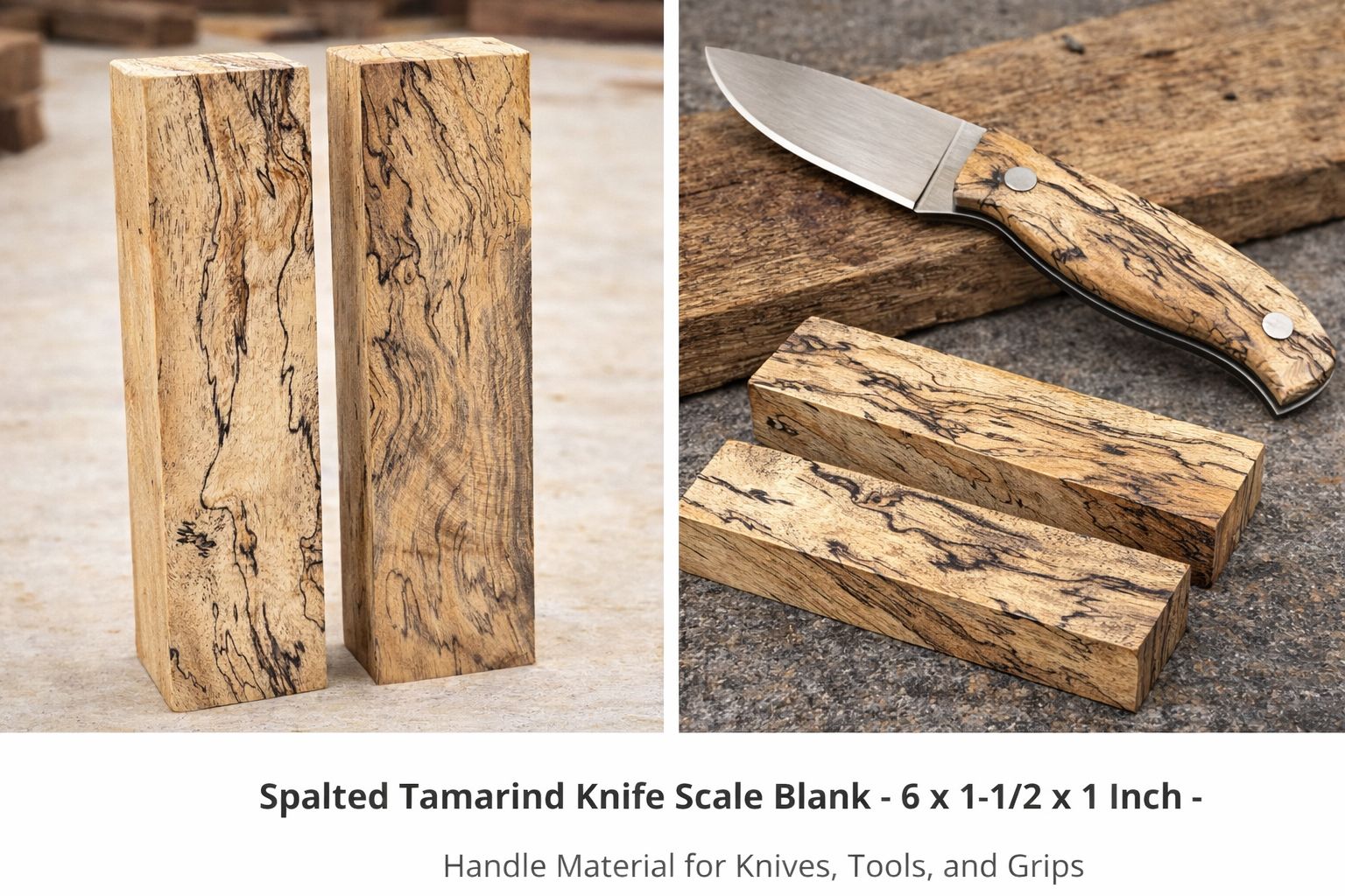 Spalting occurs naturally in wood and produces beautiful dark lines and artistic patterns, making every set unique. Tamarind wood is known for its high density, durability, and strength, ensuring your knife handles and tool grips are both visually striking and long-lasting.
